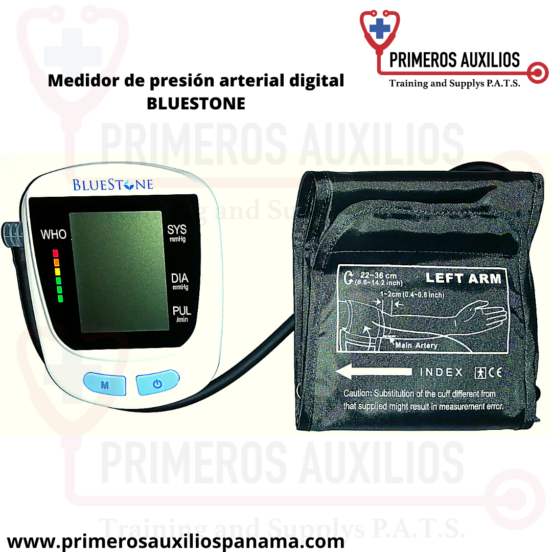 De la prestigiosa marca americana BLUESTONE Calidad y precisión en cada toma de presión Tipo brazalete para un fácil y cómodo uso Utiliza 4 baterías doble A